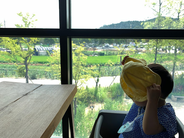 (적은 하이체어, 공간은 넒으나, 다소 뛰어 놀기 어려운 야외 공간)