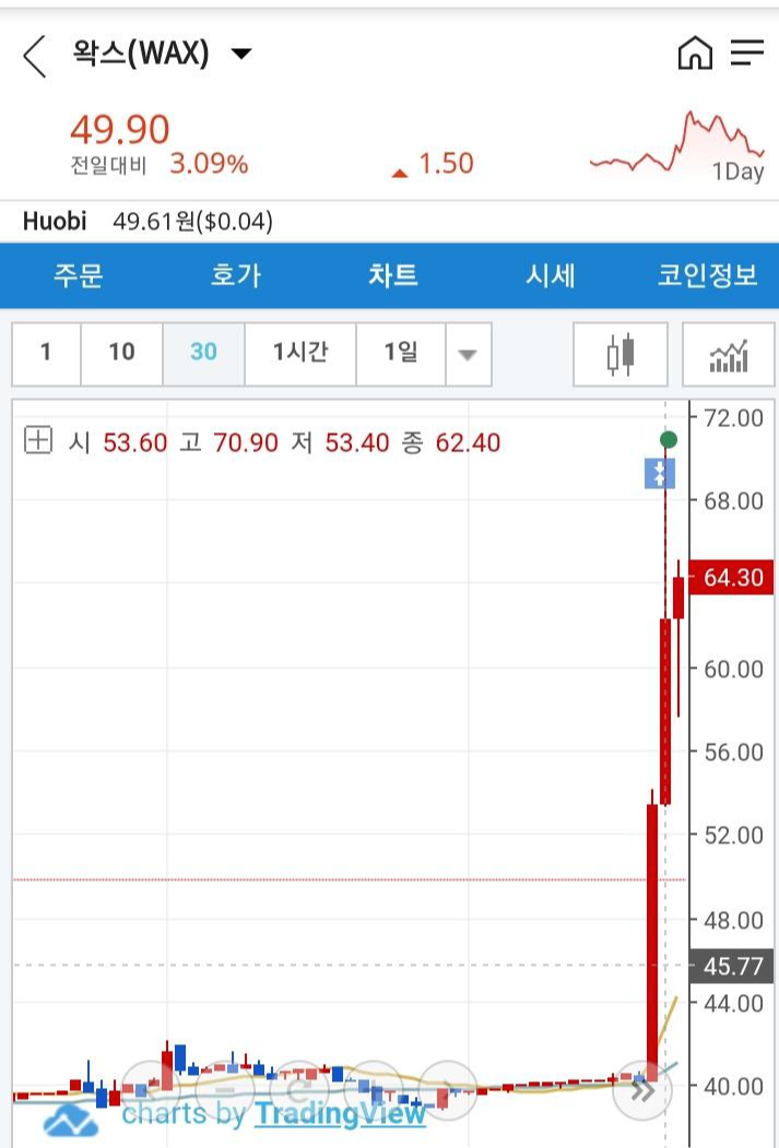 위와 유사한 차트에서 하.. 40원때 샀더라면, 아니 54원떄 주춤했는데, 저 때 들어갔더라면,,, 현 시점이 아니라 과거의 차트를 보고 그 타이밍을 놓친것을 후회하고 계시진 않으셨나요?