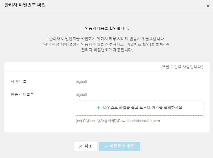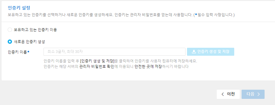 추후 접속을 위한 인증키 생성입니다. 인증키는 저장해두었다가 밑에서 접속할때 필요합니다.
