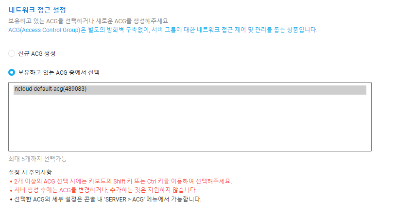 보안을 위해서 ACG ( Access Control Group ) 을 설정합니다. 그냥 기본을 누르면 됩니다.