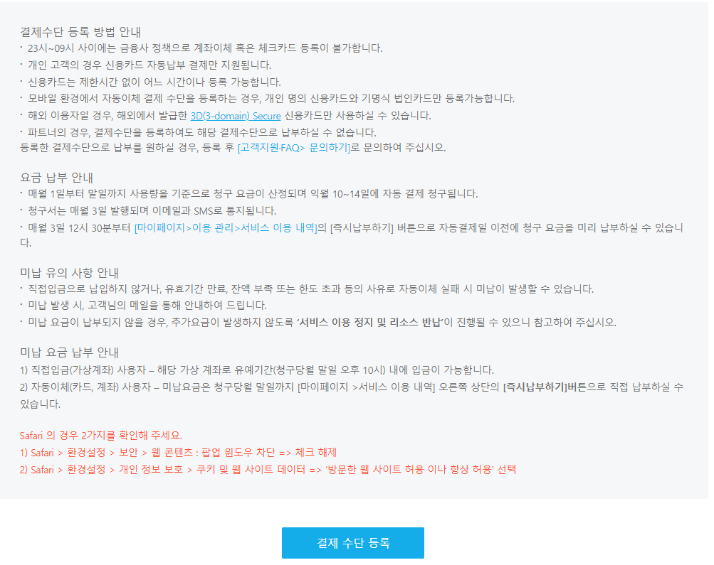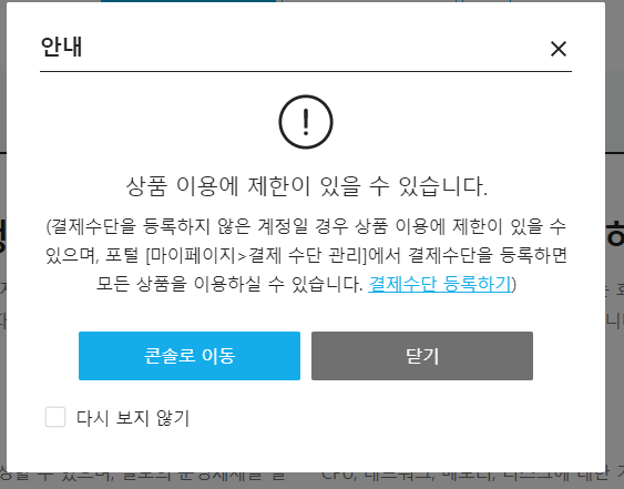 아니!! 결재수단을 등록하지 않으면, 상품 이용이 안된답니다. 흐규규