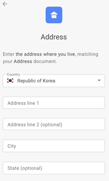 5) 주소지를 영문으로 입력합니다. 주소지는 영문 주민등록등본과 동일하게 입력하여야 합니다.