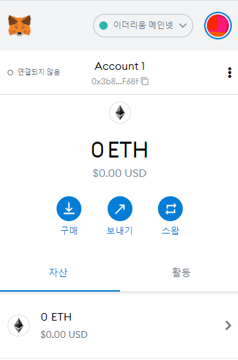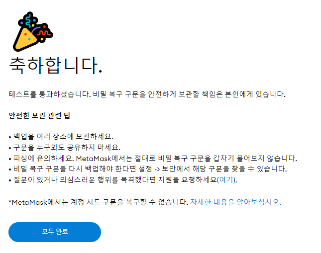 6) 모든 과정을 마쳤습니다. 이제 MetaMask 지갑이 생성되었습니다.