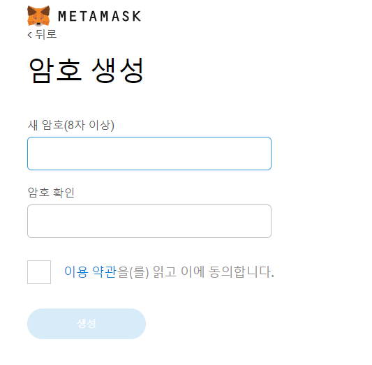 3) MetaMask 에서 사용할 암호를 적습니다.