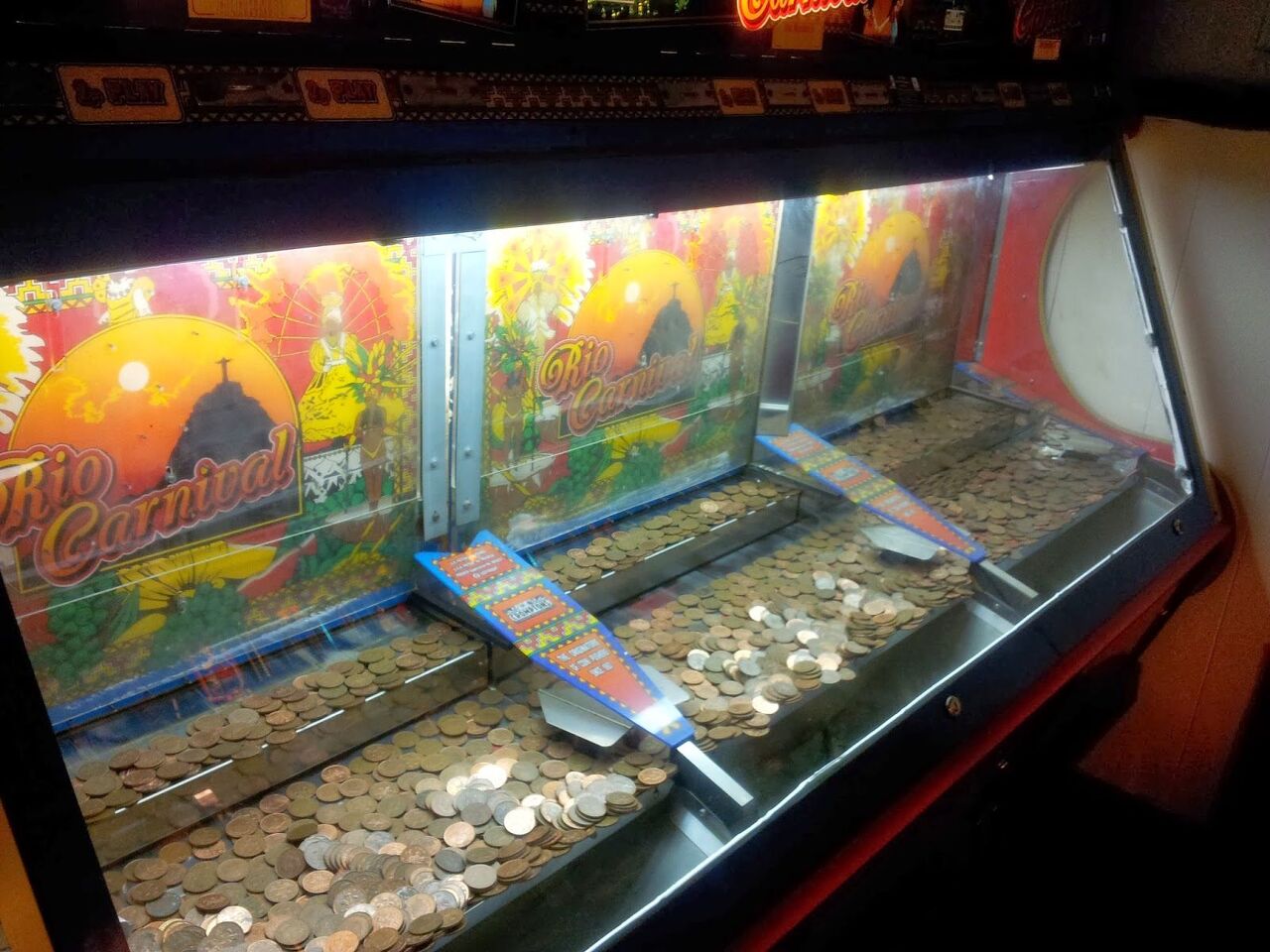 가까운 도박장(?)에 가보시면 이런식의 게임 머신을 볼 수 있습니다. 실제 동전이 올려져 있는 경우도 있고, 아니면 사탕이라던지, 초콜릿등이 올려져 있는 경우도 있지요.