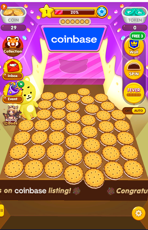 내가 일정량의 동전을 넣으면 저기 상위 칸이 동전이 떨어지게 되고, 지속적으로 밀어주는 기계가 왔다리 갔다리 하면서, 동전이 떨어져라~~~ 하고 설레면서 동전을 하나둘씩 넣는 게임입니다.