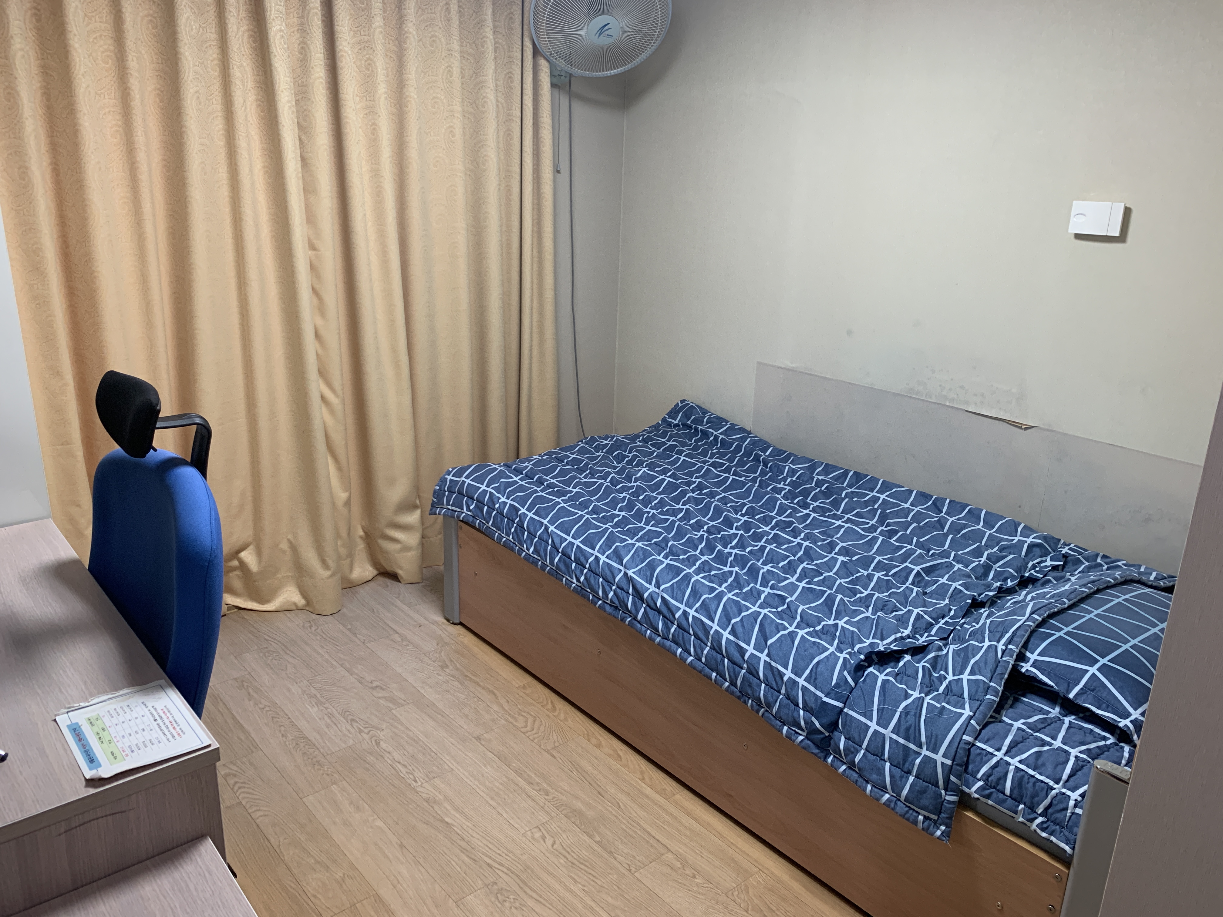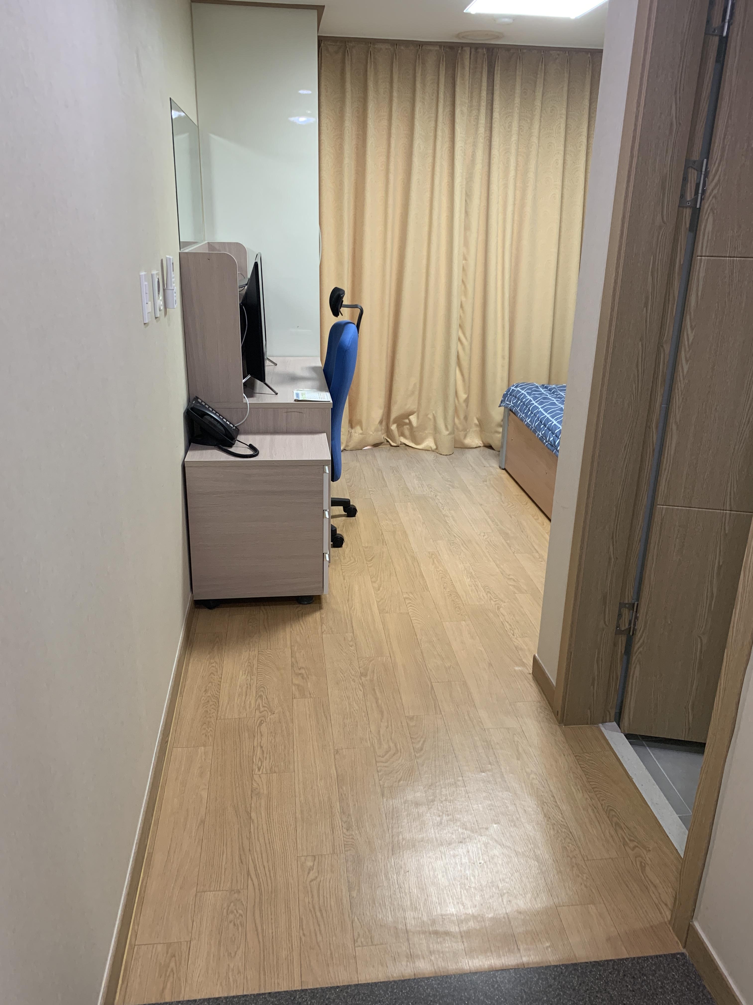 그래도 1인 1실에 배정되어서 참 다행이라고 생각되네요. 고시원 보다는 크고, 원룸보다는 작은 기숙사 형태의 방이라고 생각하시면 됩니다. 혼자 일주일 정도 머물기에는 별 큰 무리 없습니다.