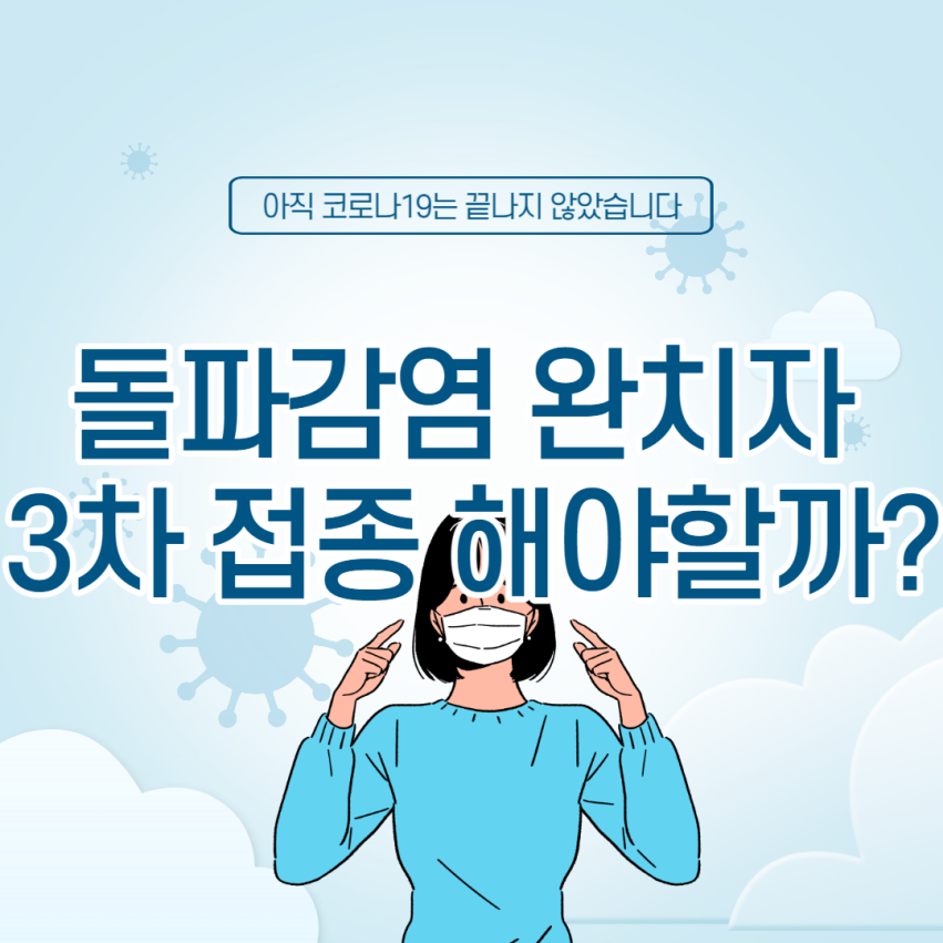 코로나 확진자가 50만명을 넘어가는 시점에서, 이미 2차 접종 (기본 접종)을 완료했지만 돌파 감염된 완치자에 대해서는 3차 접종 (부스터샷) 을 맞아야 하는지 궁금해졌습니다.