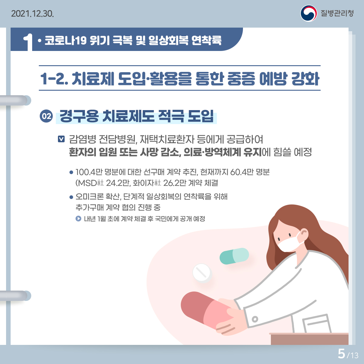 내일 (13일) 부터 먹는 코로나 치료제 현장 투입