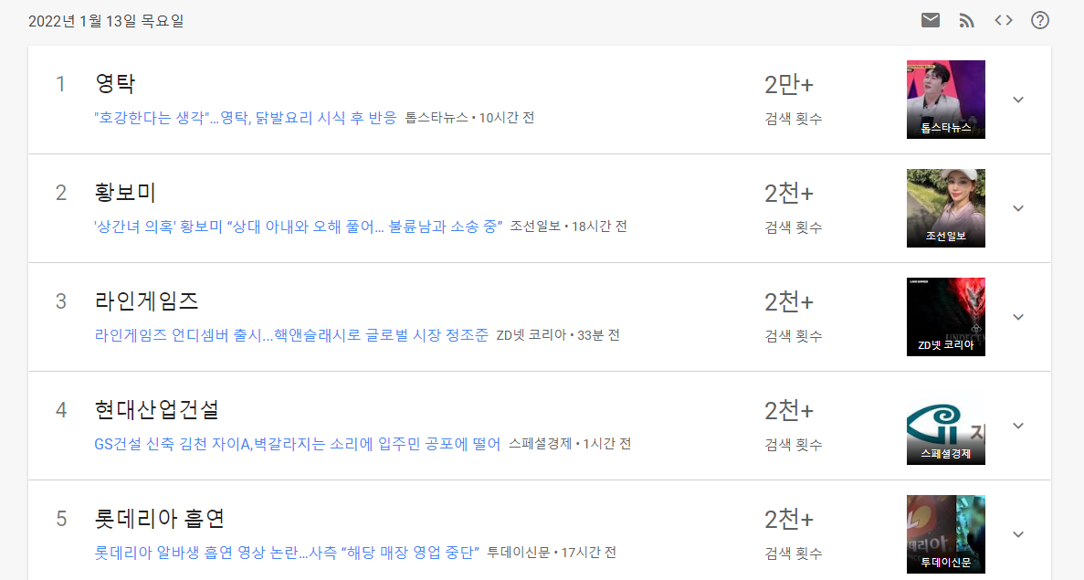- 구글 트렌트 : https://trends.google.co.kr/trends/trendingsearches/daily?geo=KR