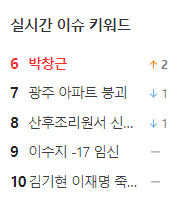 다행히 네이트 포털에서는 실시간 검색어 기능을 유지하고 있습니다. 한번에 5개씩, 2페이지로 이슈 키워드를 확인할 수 있습니다.