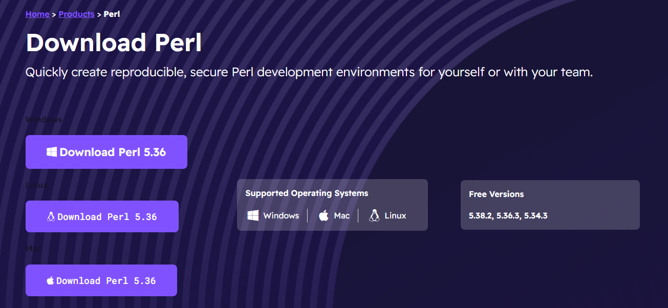 Perl powered by the ActiveState Platform. Designed to meet the security and package management needs of Perl developers.
