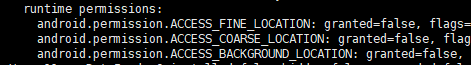android.permission.ACCESS_BACKGROUND_LOCATION: granted=false, flags=[ USER_SENSITIVE_WHEN_GRANTED|USER_SENSITIVE_WHEN_DENIED|RESTRICTION_INSTALLER_EXEMPT]