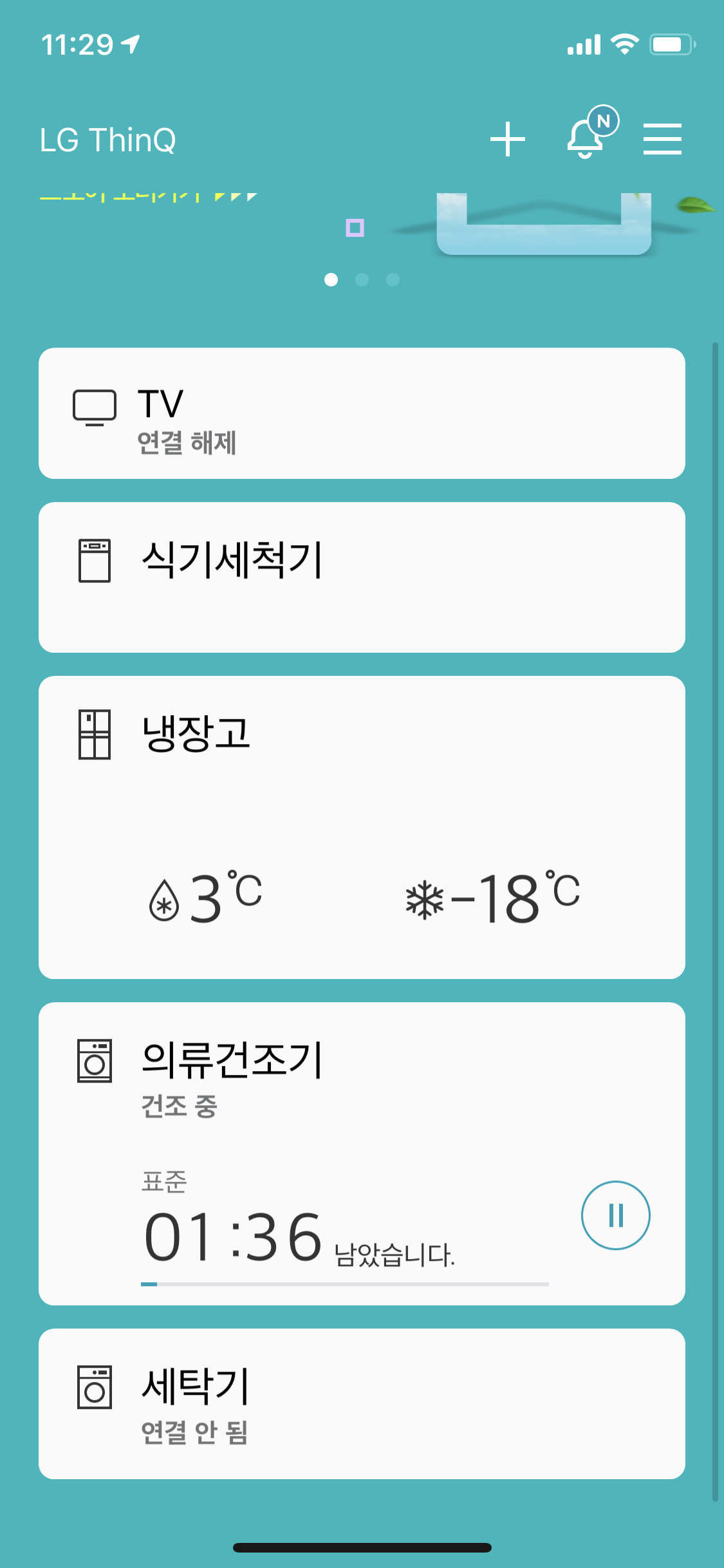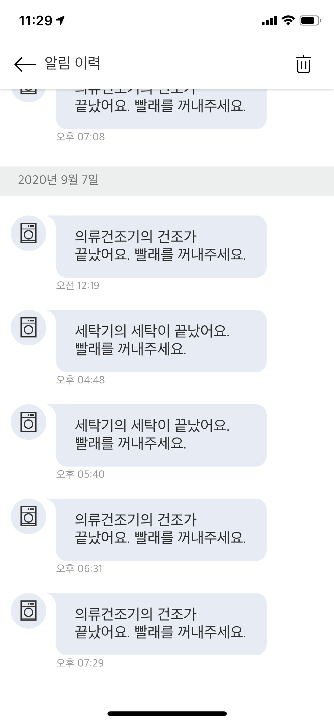 솔직히 원격제어나 다른기능은 전혀 안쓰는데, 딱 하나 쓰는게 식기세척기, 의류건조기, 세탁기의 빨래 끝남 알림이다.