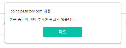 일반 기본모드로 본문 광고를 여러개 추가 할려고 하니, 아래와 같은 팝업 메시지로 광고 본문에는 하나의 광고만 삽입이 가능하게끔 시스템 적으로 막혀져 있는 상황이다.